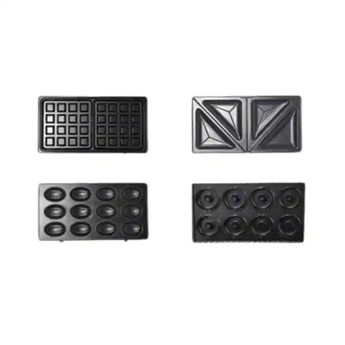 - يحتوي هذا الجهاز على 4 لوحات متبدلة، تمكنك من تغيير شكل ونوع الوجبة التي تريد تحضيرها. اللوحات هي:
