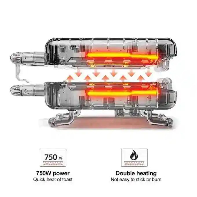 - يتميز هذا الجهاز بطلاء غير لاصق، يمنع الطعام من الالتصاق باللوحات، ويسهل عليك عملية التنظيف بعد الاستخدام. كل ما عليك فعله هو مسح اللوحات بقطعة قماش مبللة ونظيفة، وستتخلص من أي بقايا طعام أو زيت أو شحم.