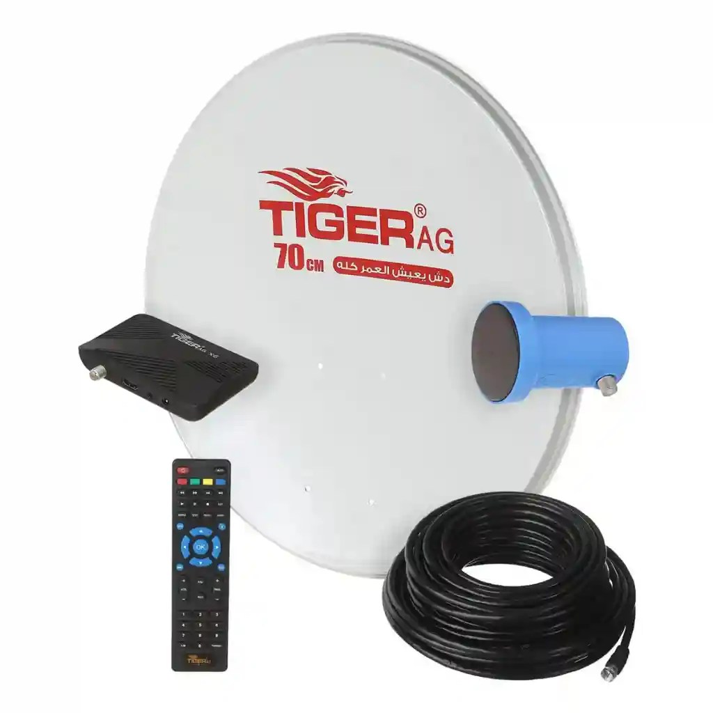 لتحقيق استقبال مثالي، يأتي هذا الباندل مع طبق دش من تايجر بقطر 70 سم. هذا الطبق يتميز بتصميم متين ومقاوم للعوامل الجوية، ما يضمن لك استقبالا قويا للإشارة مع دقة عالية. الطبق التركي الصنع يعد من بين الأفضل في فئته لضمان صورة نقية وجودة بث مستمرة.